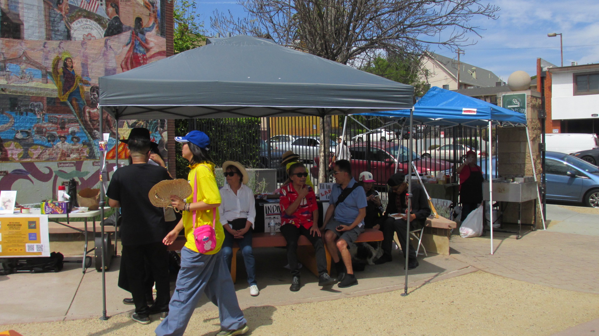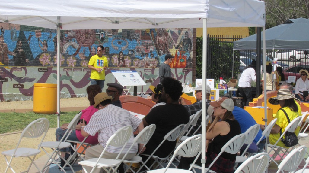 Attendees gathering in front of the stage at Unidad Park in Historic Filipinotown.