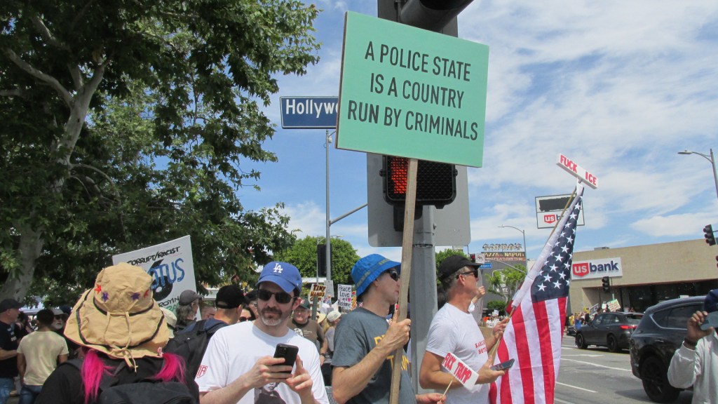 Many protesters expressed their anger over troop deployments in US cities.Photo by Michael Golob.I don’t remember seeing anything like this when I was growing up in Burbank.Photo by Michael Golob.Some protesters wore colorful costumes. Photo by Michael Golob.When the introverts are angry, watch out. Photo by Michael Golob.