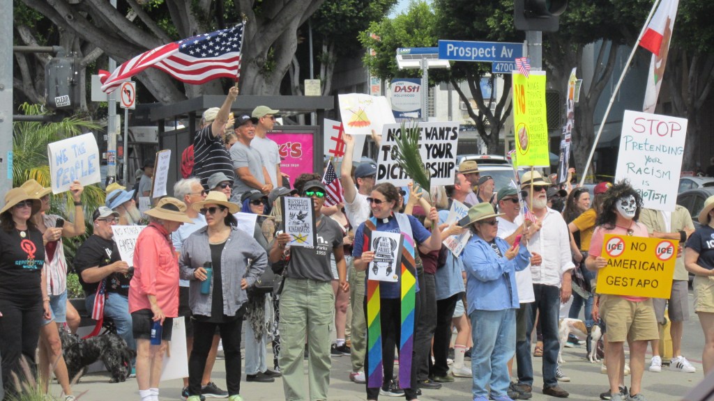 I heard that thousands of people showed up for the “No Kings” protest in Downtown LA yesterday, but since I’ve been to a number of the gatherings at LA City Hall, I decided to check out some of the smaller local events. The No Kings organizers reported record turnout across the nation, and while you always have to be skeptical about the numbers given by organizers, it does seem like an increasing number of people are angry and frustrated about the direction the country is going in. The war in Iran, ongoing ICE raids and rising prices seem to be at the top of the list of grievances.