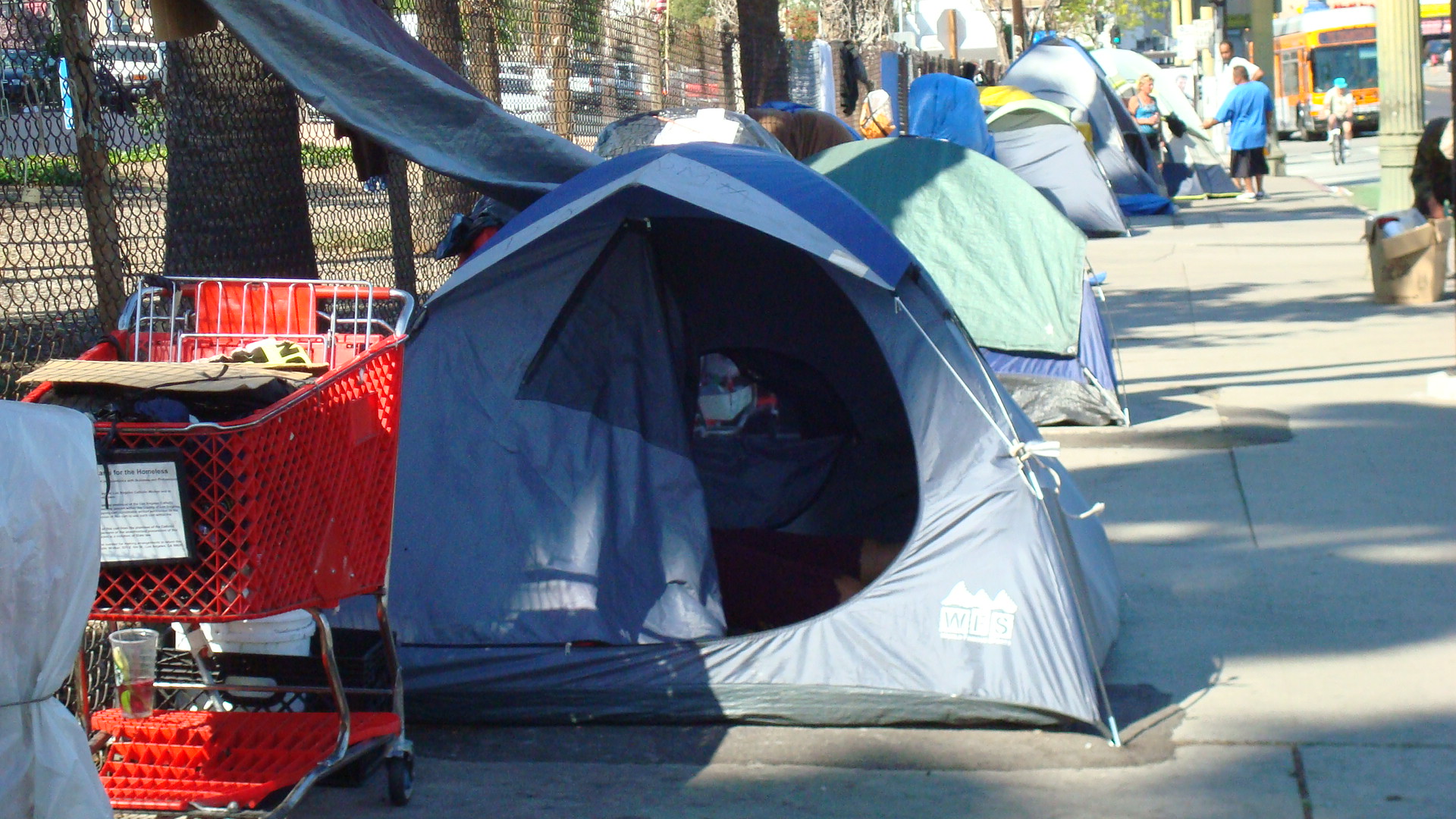 A tent settlement on Spring Street. Homelessness continues to be a problem all over LA.