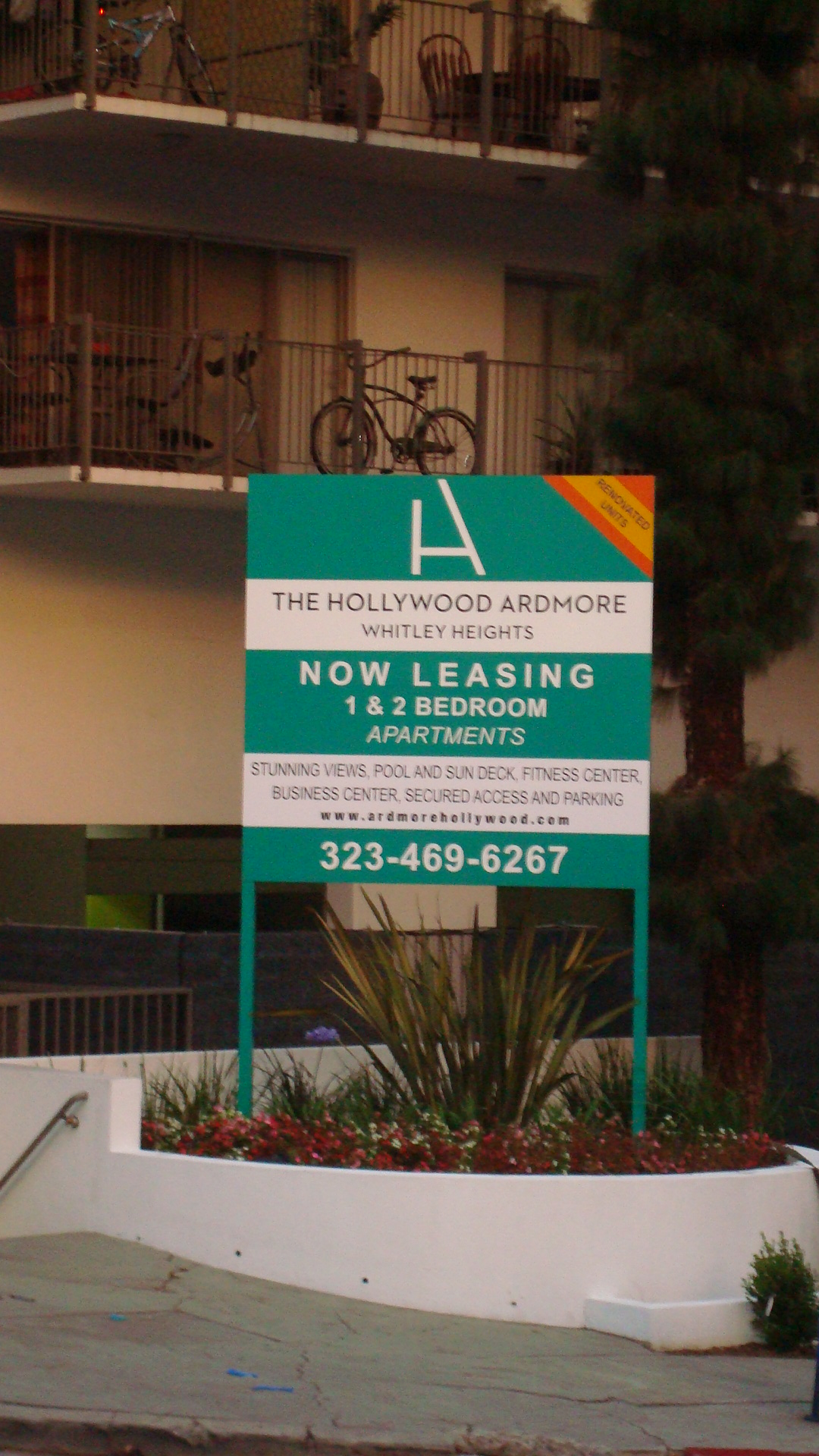 Not too long after my trip down La Brea, I was walking along Franklin and I noticed a number of apartment buildings sporting brightly colored banners to let people know they had vacant units. Here’s a selection….