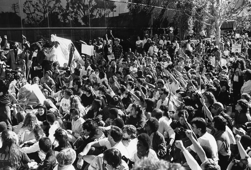 The photo at the top is from the Los Angeles Public Library photo archive. It shows an anti-apartheid protest, and was taken by Chris Gulker in 1989.