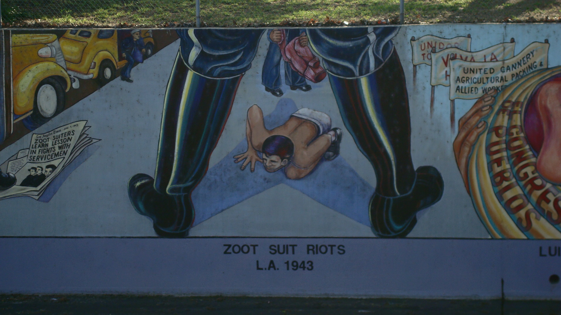 Below Oxnard, I found the Great Wall of Los Angeles. This is a massive, amazing public art project which presents a history of Los Angeles starting with the first people who lived in the area and ending in the fifties. The project is the brainchild of Judy Baca, founder of the Social and Public Art Resource Center (SPARC). It was begun in the seventies, with over 400 young people and their families working over five summers to create the mural that currently covers a half mile of concrete inside the Tujunga Wash.
