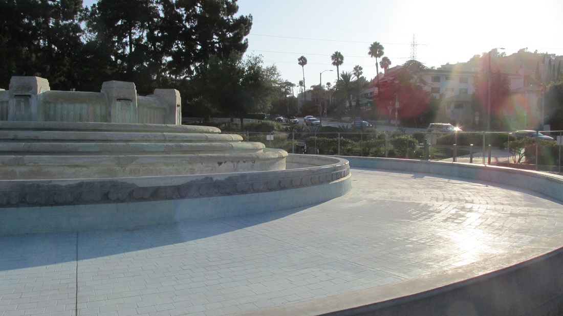 In 1940, five years after Mulholland’s death, a fountain was built at the intersection of Los Feliz Boulevard and Riverside Drive to honor the man primarily responsible for the construction of the LA Aqueduct. The choice to create a fountain was considered a fitting way to commemorate the role Mulholland played in securing the water that was necessary for the city’s growth. For decades cool, crystalline plumes arched into the air and cascaded into the rippling pool below.