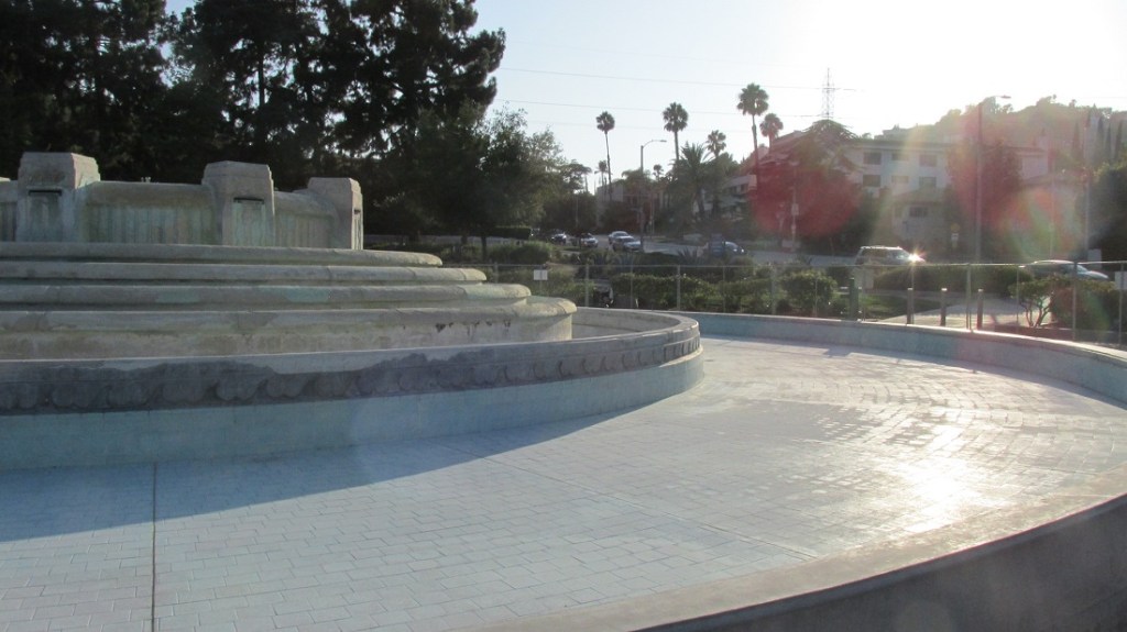 Today the fountain is dry and it’s surround by a chain link fence. While a search on the net didn’t reveal any explanation, it seems likely that LADWP shut it down in response to the looming water shortage. This is certainly a sensible step to take, but it should also raise questions about LA’s future. Mulholland was celebrated because of his efforts to provide water that would support the city’s growth. If the fountain is now dry, maybe this should be a cue to start asking how much LA can realistically grow in the future?