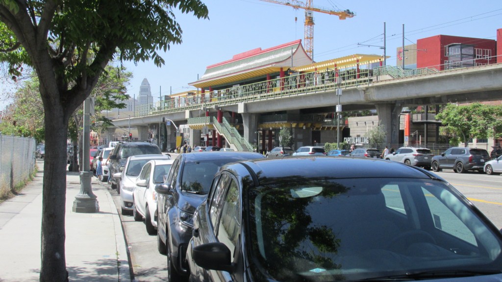 Please note in the last photo above that the L Line (Gold Line) Station is visible in the background. I’m sure some of the folks who showed up at the park that day rode the train, but obviously a lot of people decided to drive instead, in spite of the fact that the station is just a few hundred feet from the park entrance.