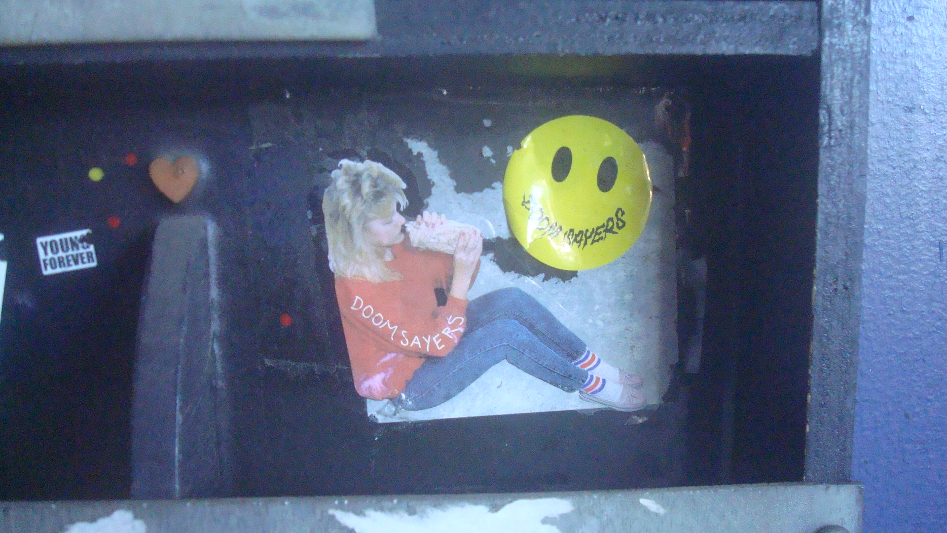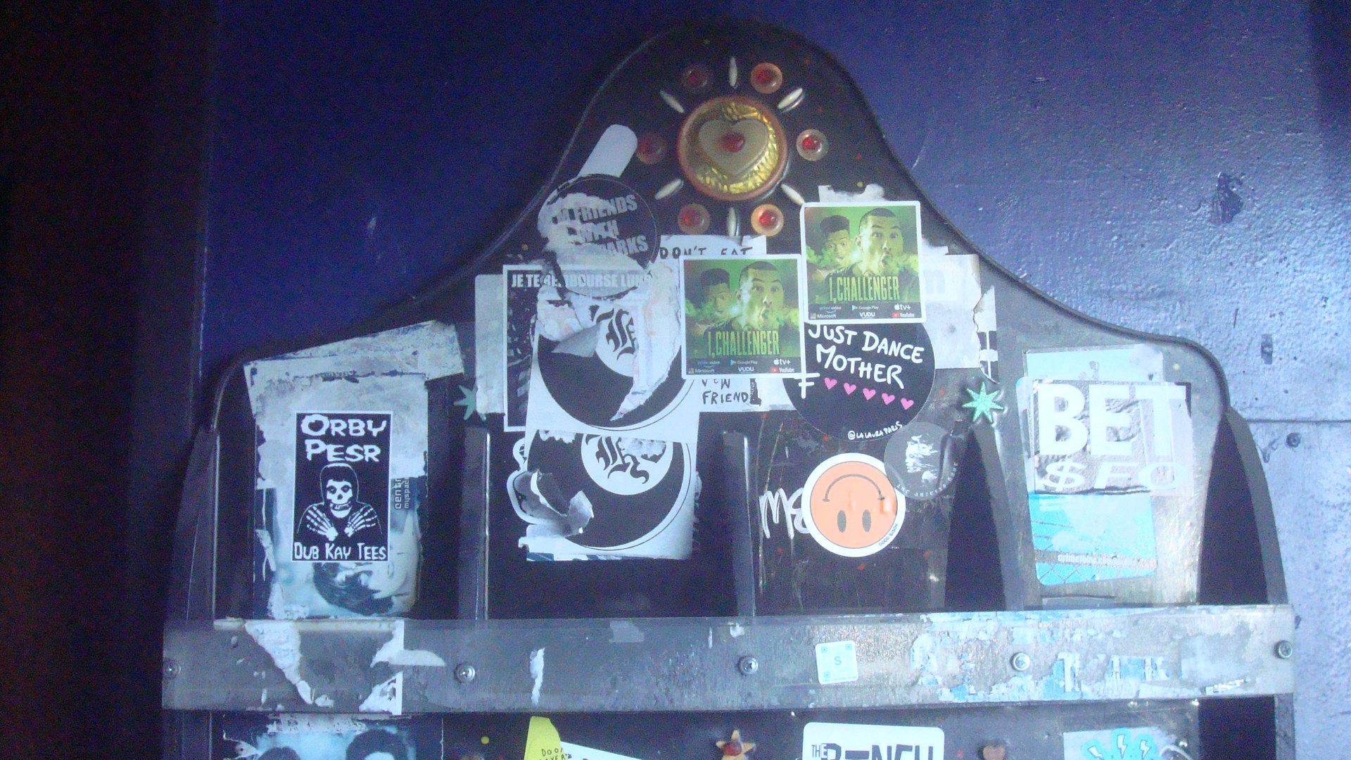 Rack outside the Bourgeois Pig where people left cards, flyers, etc.Close-up of the rack.