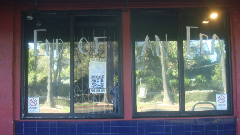 Another depressing loss for the Hollywood community. After 32 years, the Bourgeois Pig closed its doors on June 17. Located at the corner of Franklin and Tamarind, the Pig was a cozy space where writers worked on their novels, actors chatted about auditions, and an assortment of locals just lounged on the sofas and sipped their espresso. I was never a regular, but used to drop in once or twice a year. It was a really comfortable place to chill. I loved the twilight atmosphere and the low key vibe.
