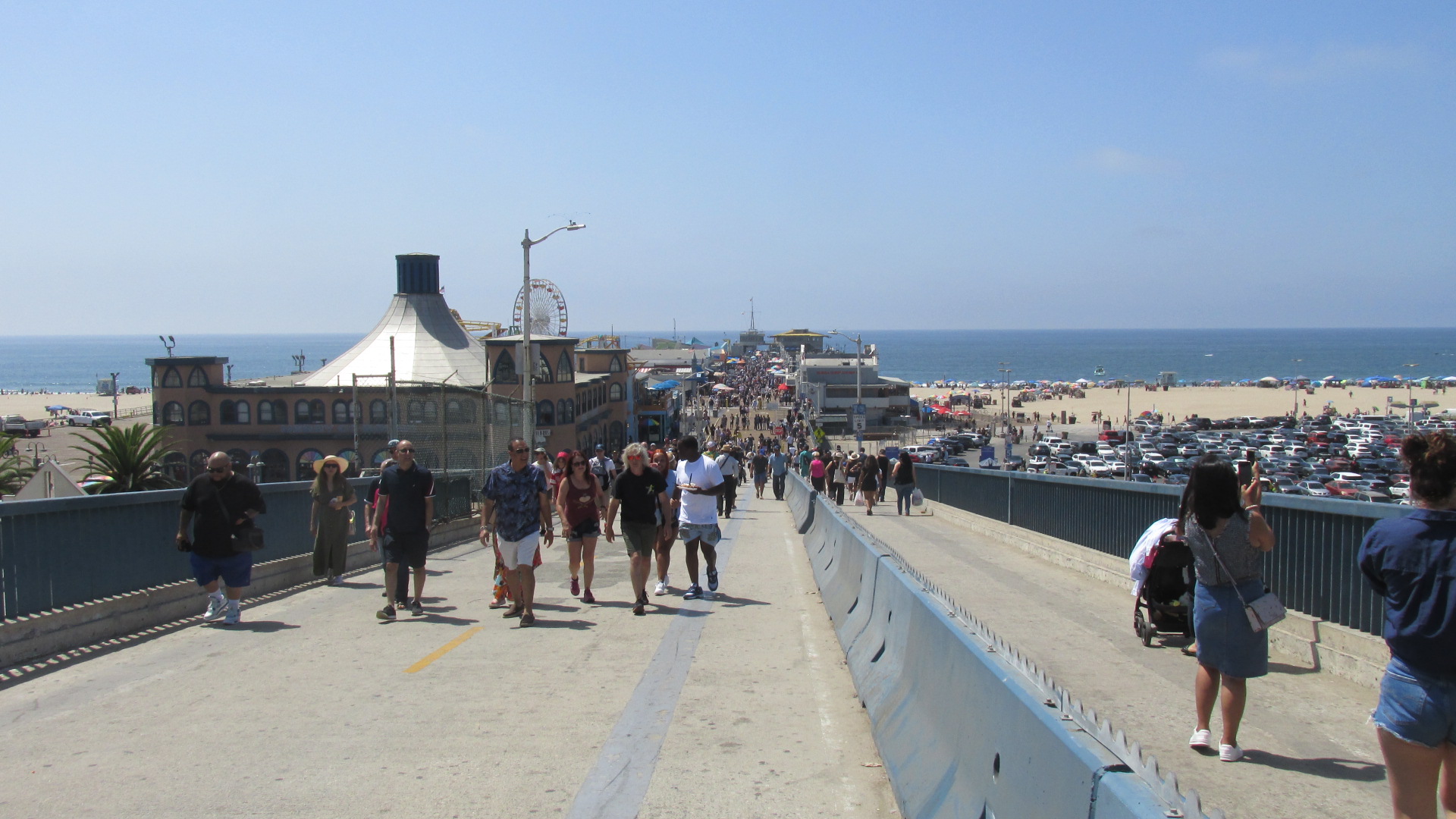 So I took the train out to Santa Monica, and it felt so good to walk on the sand and hear the sound of the surf. It was crowded, but not too crowded, and it was cool to see people just hanging out and having a good time.
